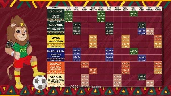 وتقام المباراة الافتتاحية مساء الأحد 9 يناير على ملعب (أوليمبي) المبني حديثاً في العاصمة ياوندي.