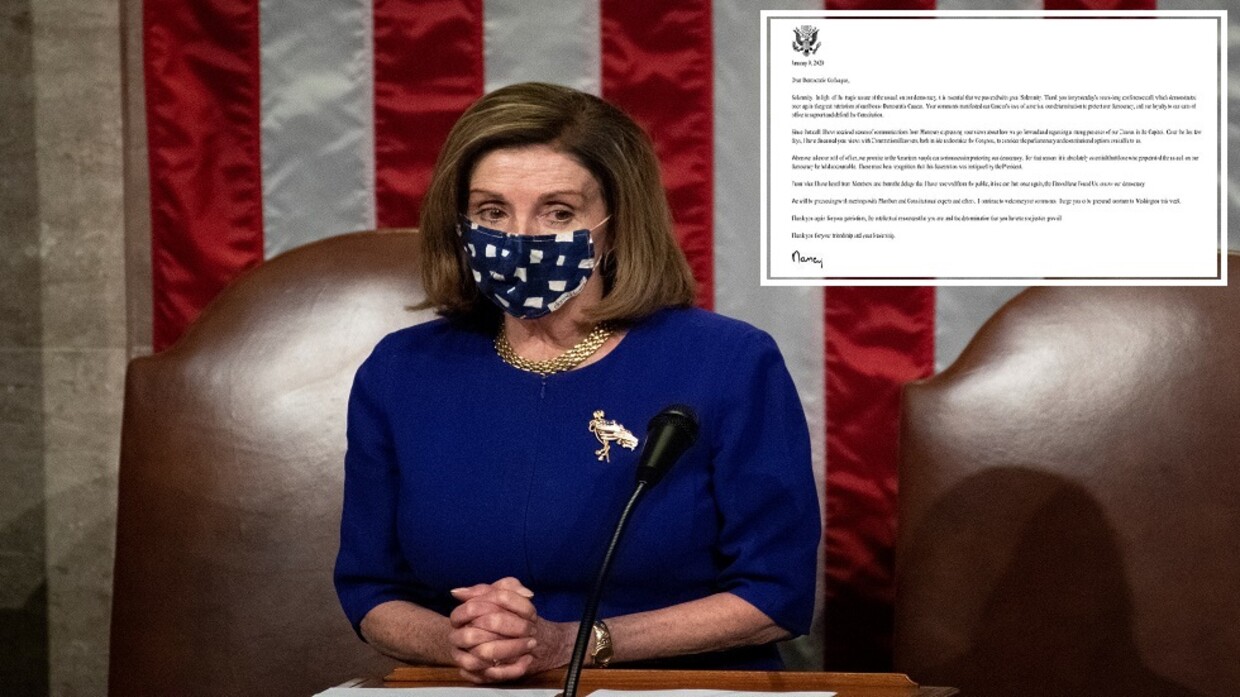 وذكرت بيلوسي في الرسالة أن النواب أقسموا اليمين للدفاع عن الديمقراطية.
