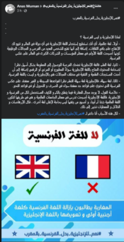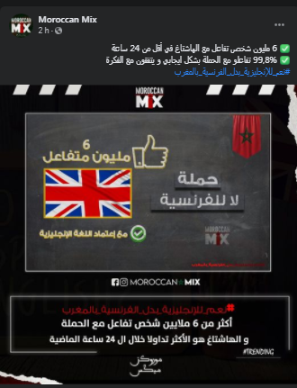 أطلق رواد مواقع التواصل الاجتماعي حملة إلكترونية عبر منصات التواصل الاجتماعي، يطالبون فيها بحذف اللغة الفرنسية كلغة أجنبية أولى وتعويضها باللغة الانجليزية، تحت وسم “نعم للإنجليزية بدل الفرنسية بالمغرب”.